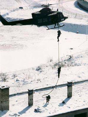 L’elicottero può essere dotato di due pattini da neve che gli consentono di operare in zone innevate.