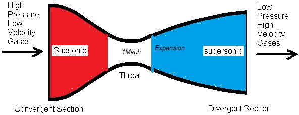 Nella realtà non si deve pensare che un condotto che diminuisce di sezione (un condotto convergente) aumenti la velocità del flusso (in questo caso l’aria) né che uno condotto che aumenti di sezione (divergente) diminuisca la velocità del flusso. A livello fisico, nel caso di condotti debolmente variabili (ossia che variano poco di sezione), avremo due casi separati se il flusso del gas arriva a velocità subsonica (M<1) o supersonica (M>1). Il Numero di Mach (M o Ma) è un gruppo adimensionale adimensionale (un numero, un valore senza dimensione, “praticamente” senza unità di misura) che viene utilizzato nello studio della comprimibilità o incomprimibilità di un flusso. Se avessimo un flusso supersonico, quindi a M > 1, in entrata ad un condotto convergente, il risultato non sarebbe un aumento di velocità ma una diminuzione di quest’ultima (poiché entra in gioco la densità) mentre nel caso di un divergente aumenterà la velocità.