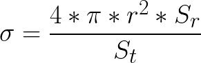 In cui 4πr² indica l’area di un cerchio mentre S(r) è la potenza riflessa per unità di area dall’oggetto (W/m²) mentre S(t) è la potenza intercettata dal velivolo per unità di area (W/m²).