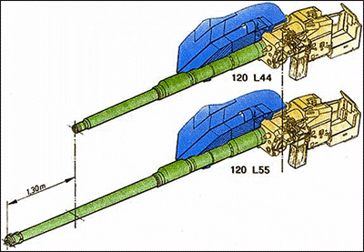 - Paragone tra L44 e L55 (120 mm ad anima liscia).